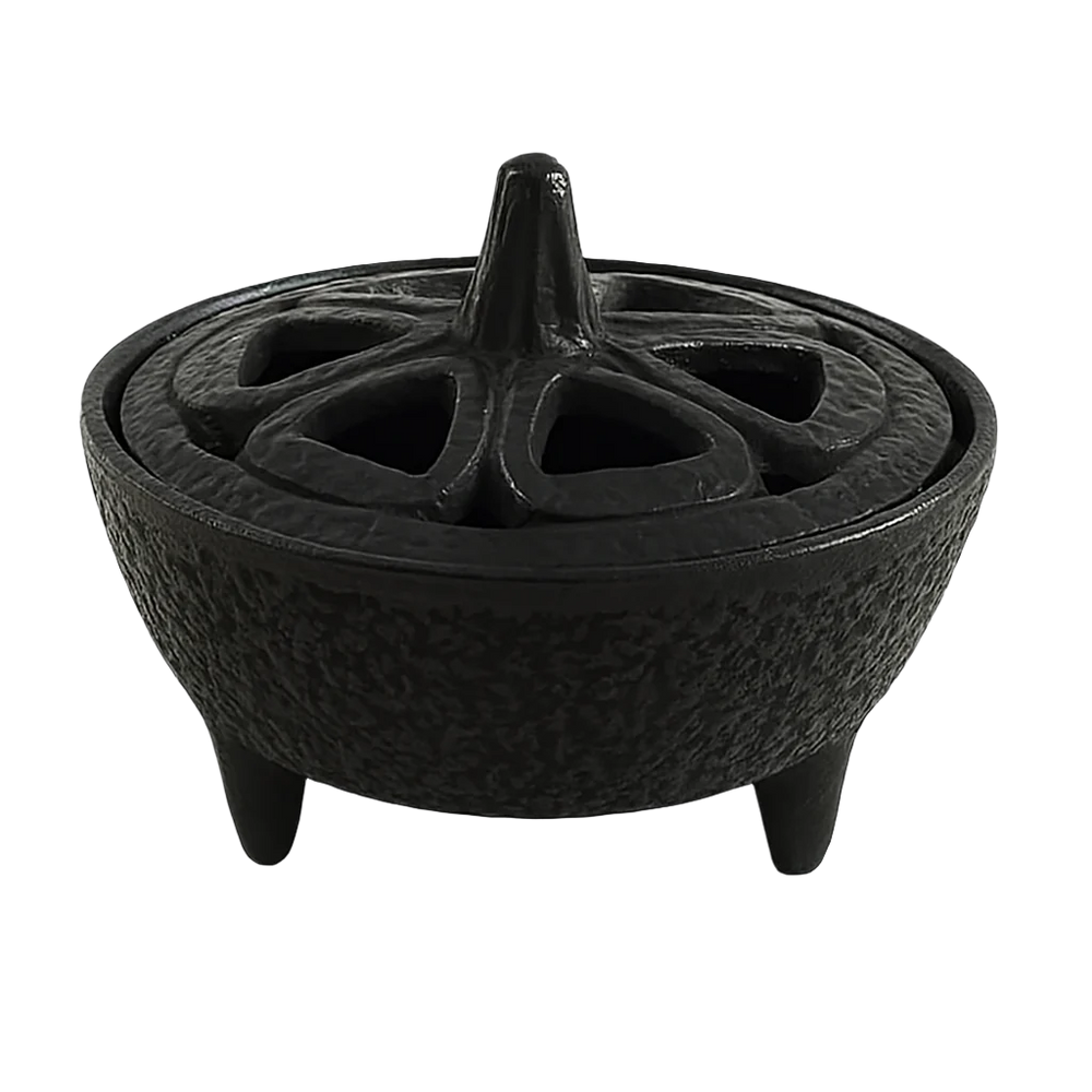Brûleur d'encens en fonte noire parfait pour brûler des grains d'encens/résine avec du charbon de bois