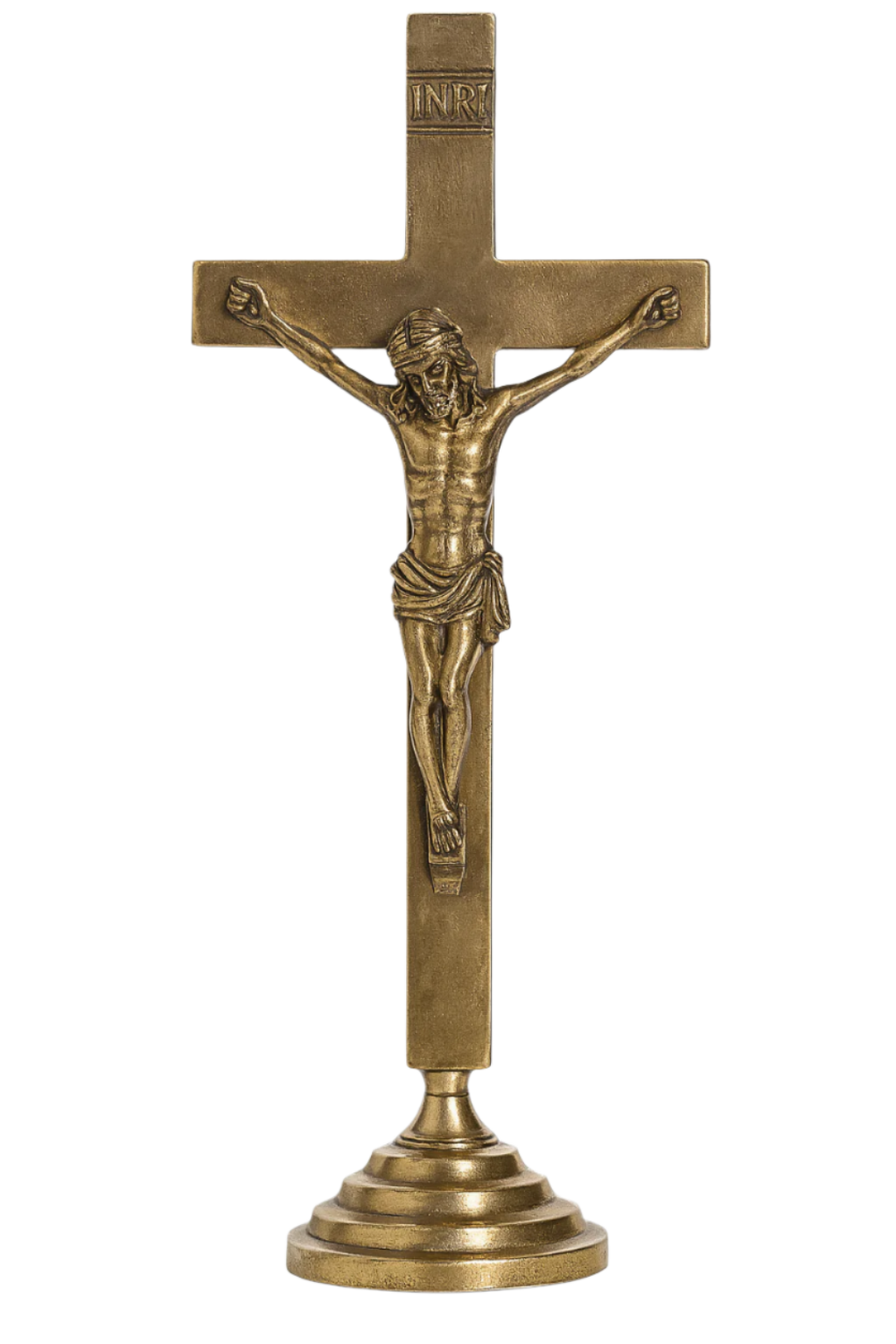 A beautifully crafted standing brass cross, measuring 12 inches tall with a stable base. Ideal for home altars, prayer spaces, ceremonies, or sacred décor.