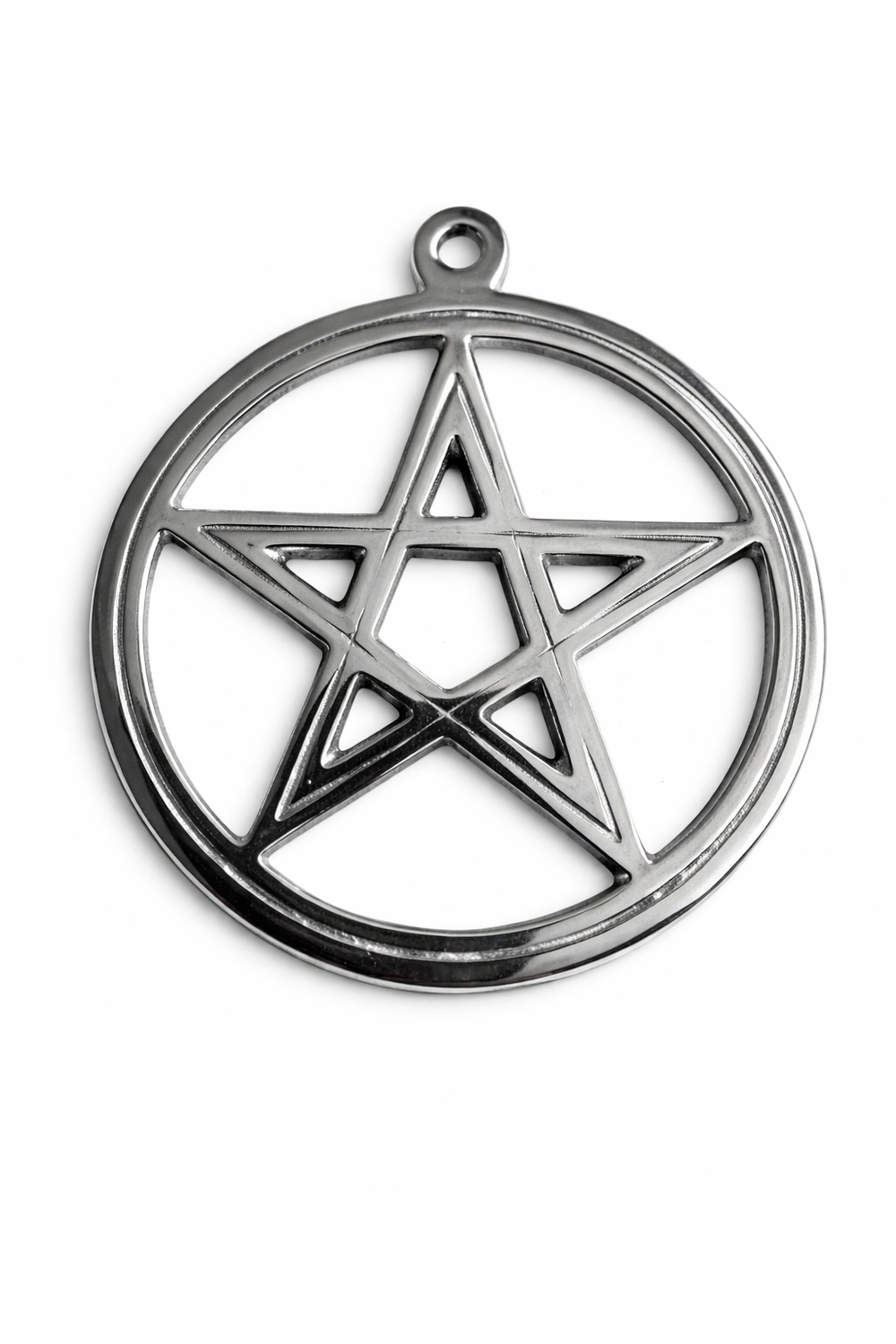 A solid brass pentagram, perfect for altars, wall décor, or ritual use. Lightweight, polished, and easy to hang—adds protection and sacred energy to any space.