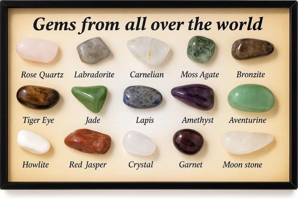 A caixa indica certas condições com as quais cada cristal pode se relacionar no sentido de cura.